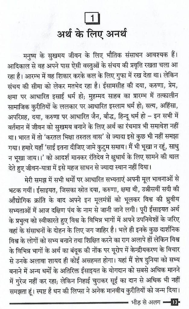 लेख अच्छा और सार गर्भित है। अर्थ की अधिकता और न्यूनता दोनों ही मानवता को अंधकार की ओर धकेल देता है। इस लेख में अर्थ से अनर्थ की समस्याओं पर विस्तार से टिप्पणी की गई लेकिन उसका हल क्या है ?? इस प्रश्न पर लेखक मौन है। अब समय समस्या गिनाने का नहीं है बल्कि हल , उपाय बताने का है।इसका अभाव लेख में खटकता है।